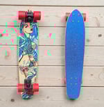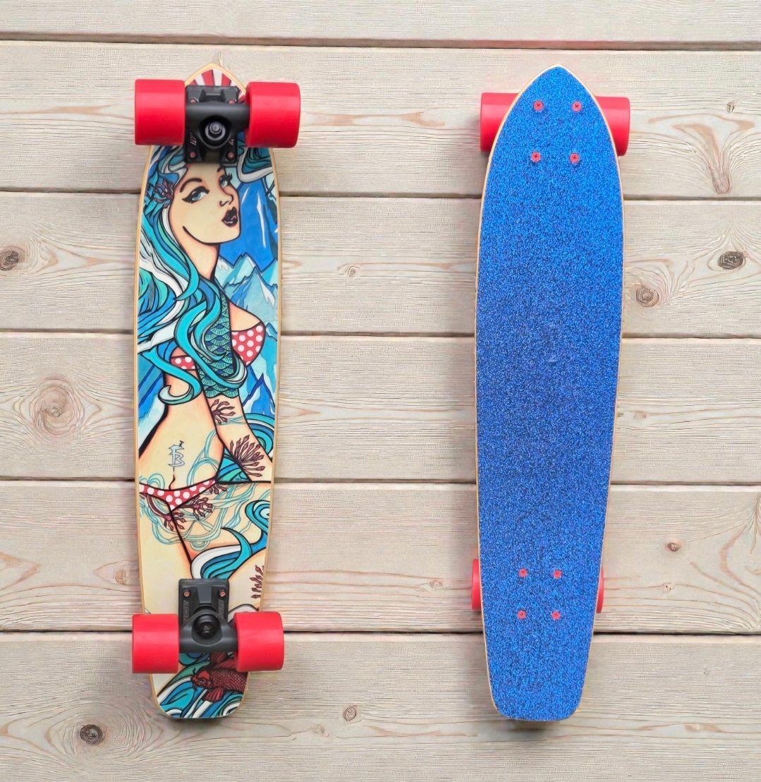 All artwork is printed on a high visibility reflective decal/sticker. The high visibility reflective decal/sticker is lot like the material used for road signs, when light hits it, it reflects and "lights up" making the artwork POP, that much more! As an added bonus, it could save your life when walking up a hill during low light situations, because cars will light up the board and be able to see you better.