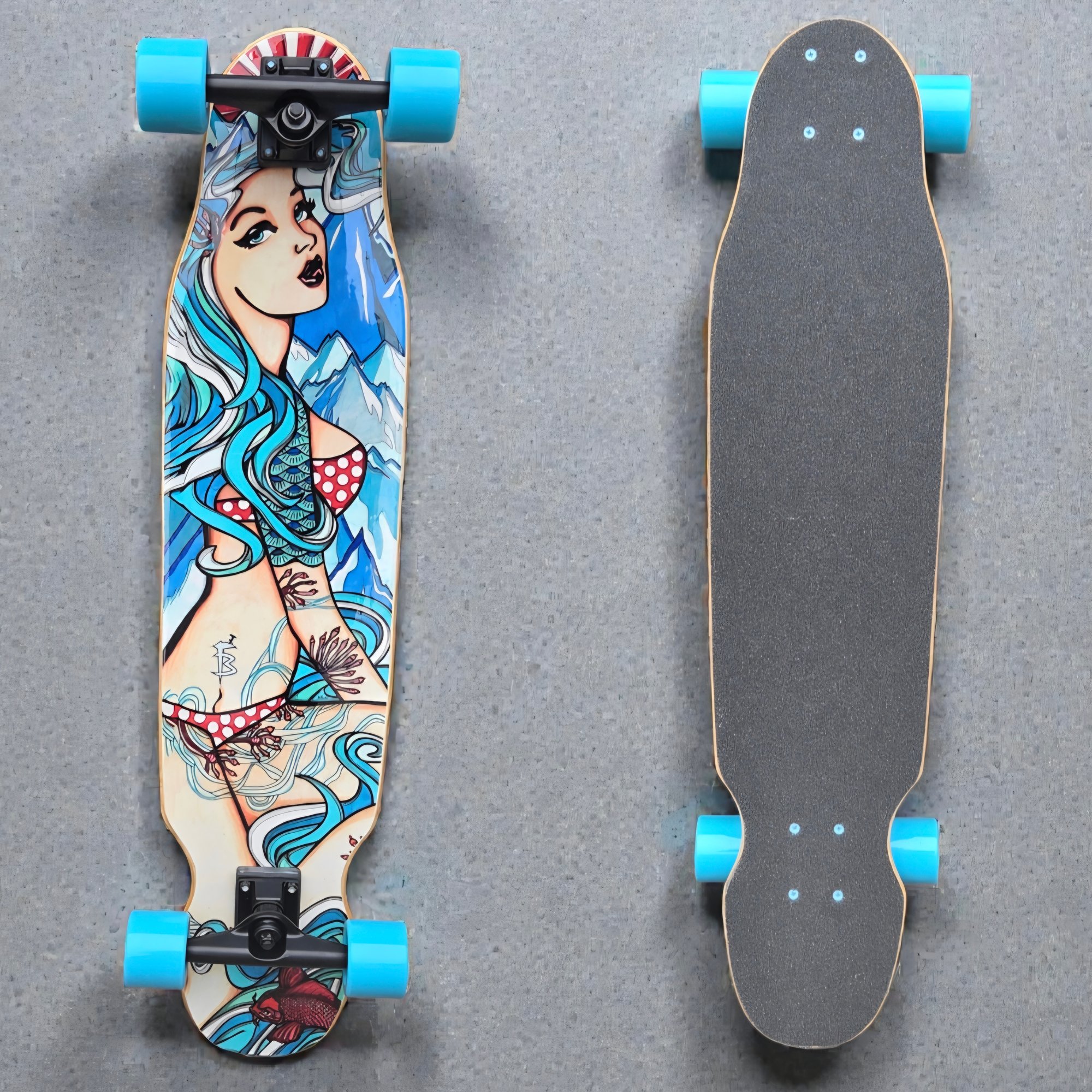 Specs: Length~36", Width~8.75", Wheelbase~26.5", Construction~11 plies premium baltic birch with FB06E fiberglass laminate